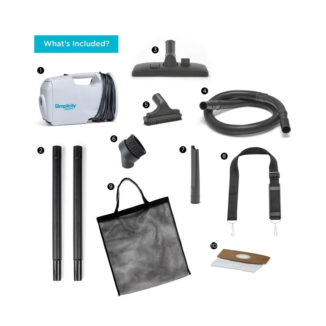 | Special Feature | One Handheld Portable Canister Vacuum with Shoulder Strap, One Charcoal Filter, One SS-6 Vacuum Bag, Long Cord Vacuum with 25 ft cord; Storage for Adjustable Hard Floor Tool for Hardwood and Rugs, Dusting Brush, Crevice Tool, Upholstery Tool; Two-piece Extendable Wand with Adjustable Suction, Flexible Hose Reaches up to 8 ft, Blower Port, Micro Tool Set, Compatible with SPET-TOOL Simplicity Pet Fur Remover Upholstery Tool |